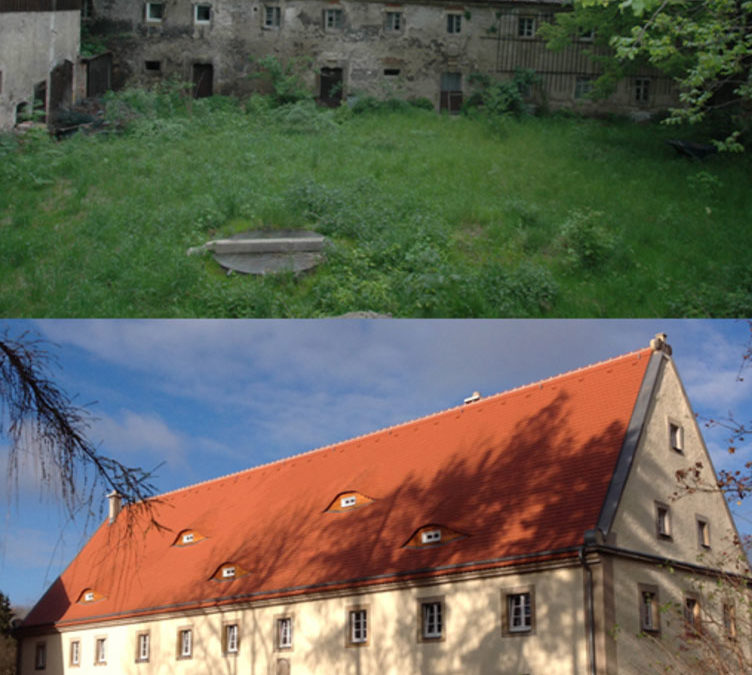Die architektonische Qualität des Wohn-Stallhauses von 1798 ist wieder sichtbar. Bis hierhin war es ein weiter Weg mit vielen operativen Entscheidungen und Vergleichen .. und dem großen Mut des Bauherrn. Angesichts des Ausgangszustandes gehörte mehr als Optimismus und eine Vision dazu , das Vorhaben anzugehen.