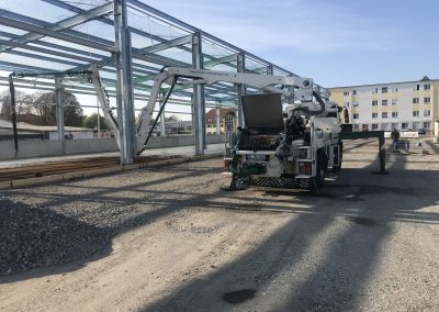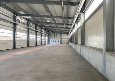 Die geforderte wirtschaftliche Lösung wurde mit einem Stahltragwerk erreicht, wobei die besondere Herausforderung der statische Lastfall „Tore alle geöffnet“ mit daraus folgendem komplettem inneren Windangriff bestand.